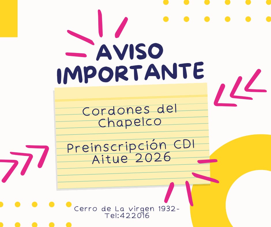 La Dirección de Primera Infancia del Municipio informó que este jueves, 25 de septiembre, comienza el período de preinscripción 2026 para el Centro de Desarrollo Infantil (CDI) Aitue, de Cordones del Chapelco.