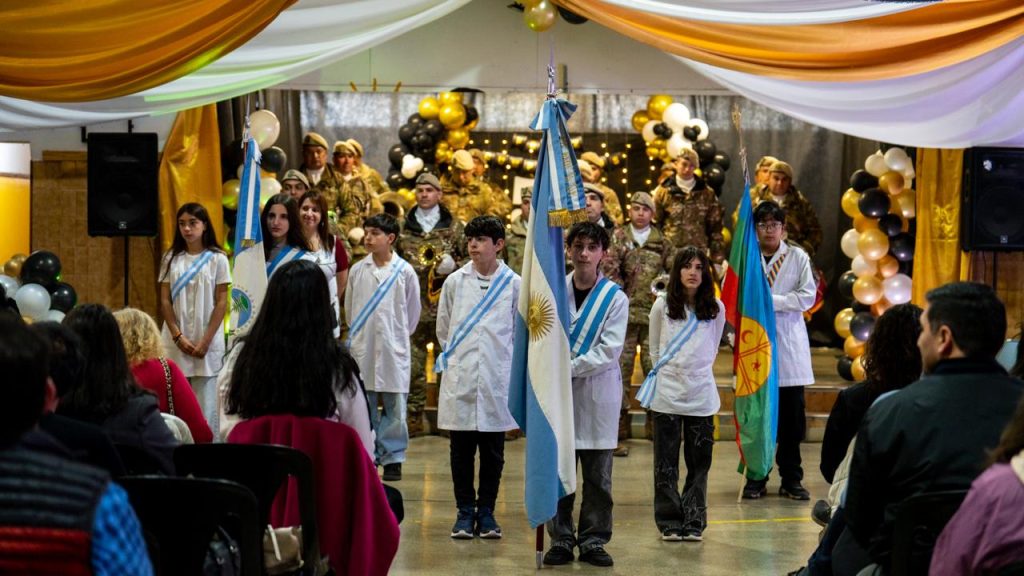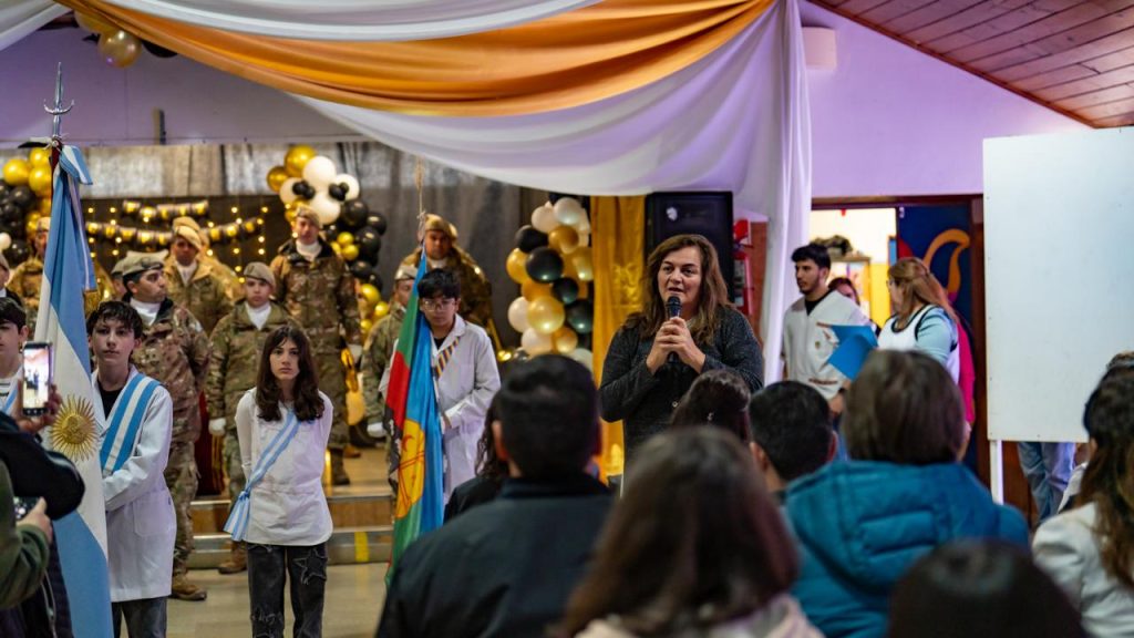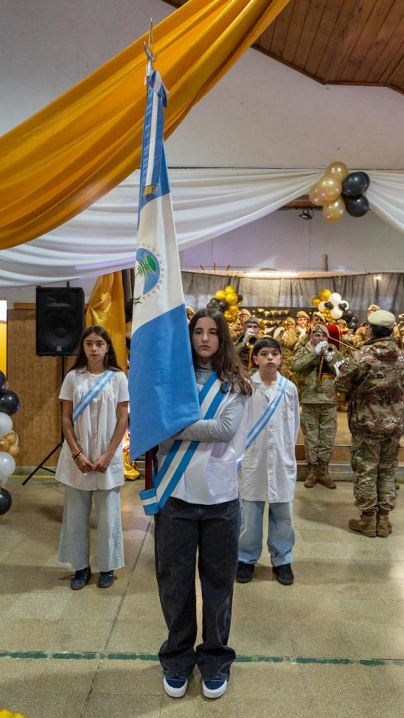 En la oportunidad, la presidenta del Concejo Deliberante, Natalia Vita, a cargo del Ejecutivo municipal, hizo entrega del Decreto que formaliza el padrinazgo de la Municipalidad y de dos banderas de ceremonia, una Argentina y otra de la provincia de Neuquén.
