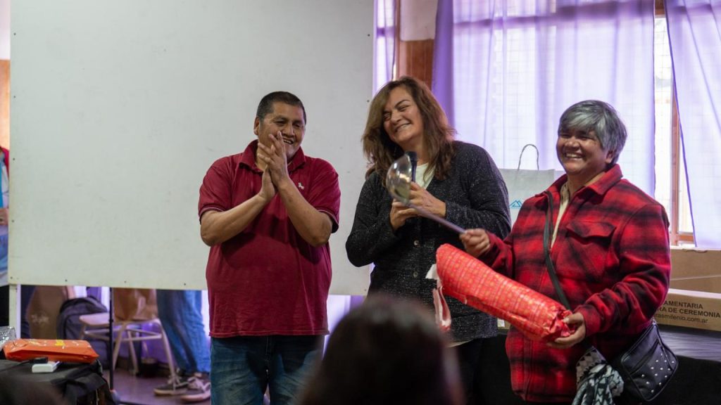 Tras felicitar a la comunidad educativa por este 50° aniversario, Vita entregó a las máximas autoridades de la Escuela los regalos referidos en la Ordenanza: “dos banderas, una de ceremonia Argentina y otra de ceremonia de la provincia de Neuquén, con sus respectivas astas, pedestales, moños, cuatro bandas y dos tahalíes con cujas, reafirmando su compromiso con la comunidad educativa”.