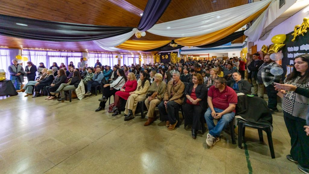 El acto contó con la presencia de la Fanfarria El Hinojal e incluyó el descubrimiento de una placa conmemorativa en el exterior del edificio; regalos, homenajes y discursos para las y los trabajadores en actividad y para quienes transitaron por la escuela a lo largo de estas cinco décadas. Luego del encuentro institucional, un almuerzo permitió continuar con la celebración, entre anécdotas y emociones.