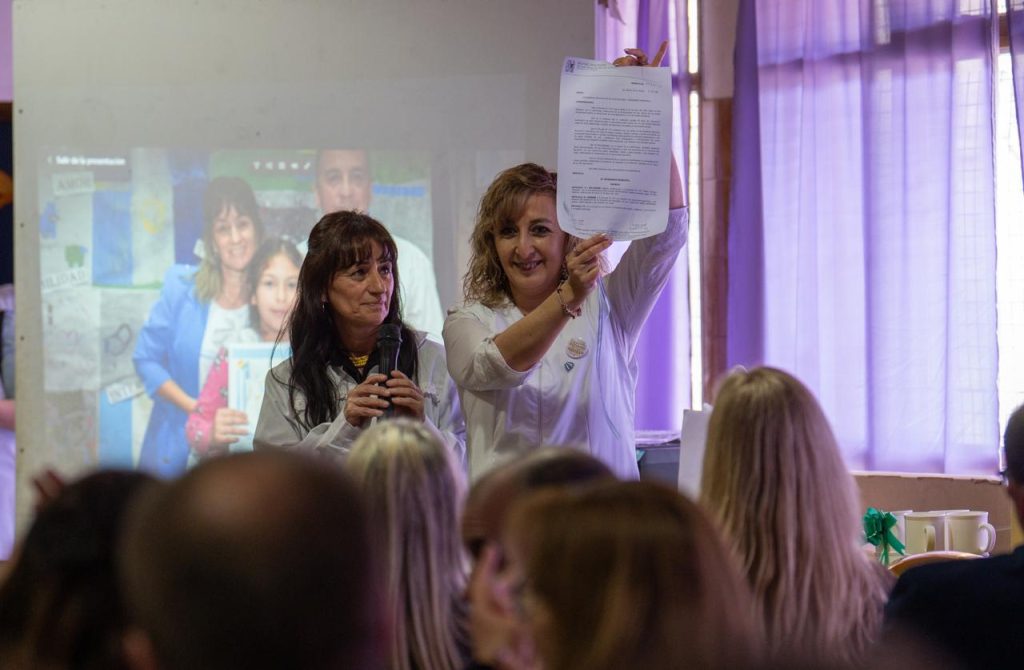 Emocionadas, la directora de la Escuela, Mariela Gómez, y la vicedirectora, Nélida Valenzuela, leyeron el Decreto y destacaron que ambas banderas de ceremonia “no sólo van a acompañar a nuestra escuela, sino que nos van a recordar día a día quiénes somos y cuáles son nuestros valores”.