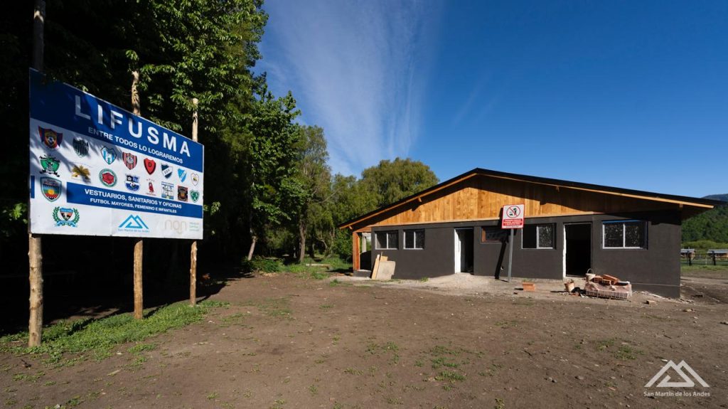 Los vestuarios y la sede de la Liga de Fútbol de San Martín de los Andes (Lifusma), ubicadas en el predio de la cancha Elías Sapag, entraron en su etapa final de construcción. La obra –que está avanzada en más de un 90 por ciento- incluye vestuarios, sanitarios, oficinas para la Liga y sala de reuniones.