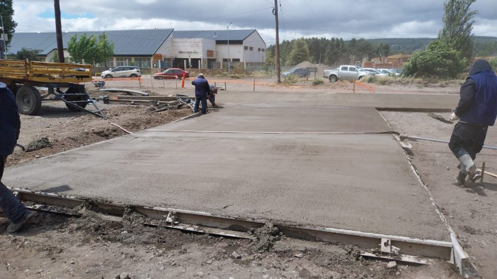 Una cuadrilla de la Subsecretaría de Obras Públicas comenzó este lunes a trabajar con hormigón en la rotonda de Av. Los Lagos, frente a la Escuela 359 y frente al nuevo edificio del Cpem 96. En esta jornada se pavimentó la continuidad de la avenida hasta la intersección con la calle Cerro Colorado.