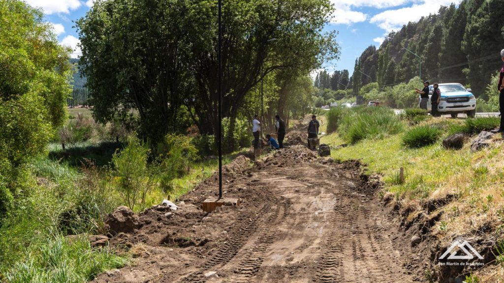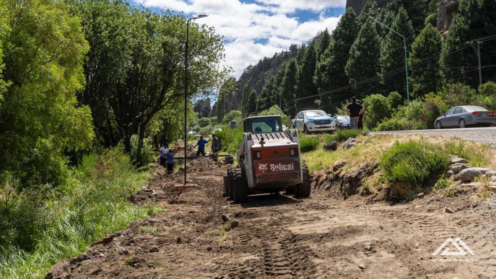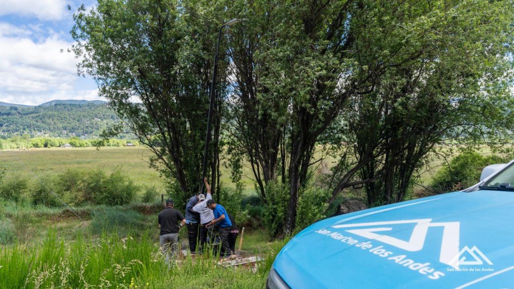 Una cuadrilla de la Subsecretaría de Obras Públicas comenzó esta semana la instalación de 34 farolas con luces LED que iluminarán la senda que el Municipio construye paralela a la Ruta Nacional 40, entre el supermercado La Anónima y callejón de Bello.