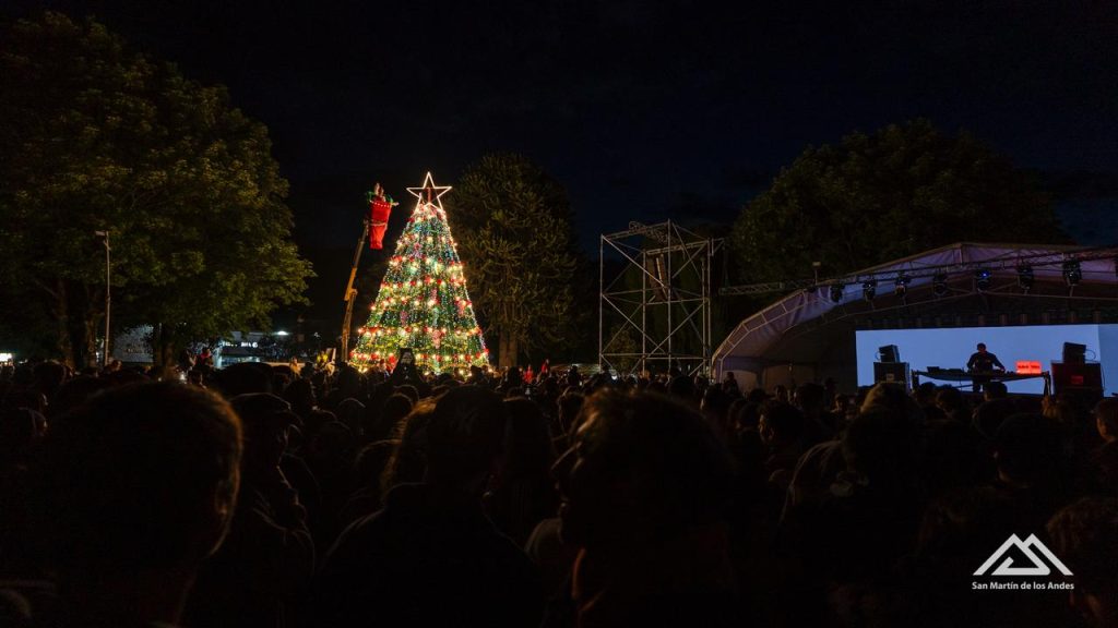 Durante toda la jornada, vecinas, vecinos y turistas recorrieron la feria de emprendedores, de compartieron los inflables y otros juegos para las infancias, disfrutaron de los shows artísticos y aplaudieron la presencia de Papá Noel y de la duende encargada de encender las luces del árbol.