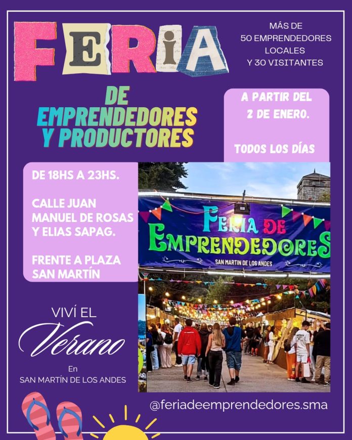 El 2 de enero vuelve la feria de emprendedores, un clásico del verano de San Martín de los Andes que este año llega más grande y renovado. Este paseo imperdible para vecinos y turistas funcionará todos los días de 18 a 23 hs, ocupando toda la calle Rosas y Elías Sapag.