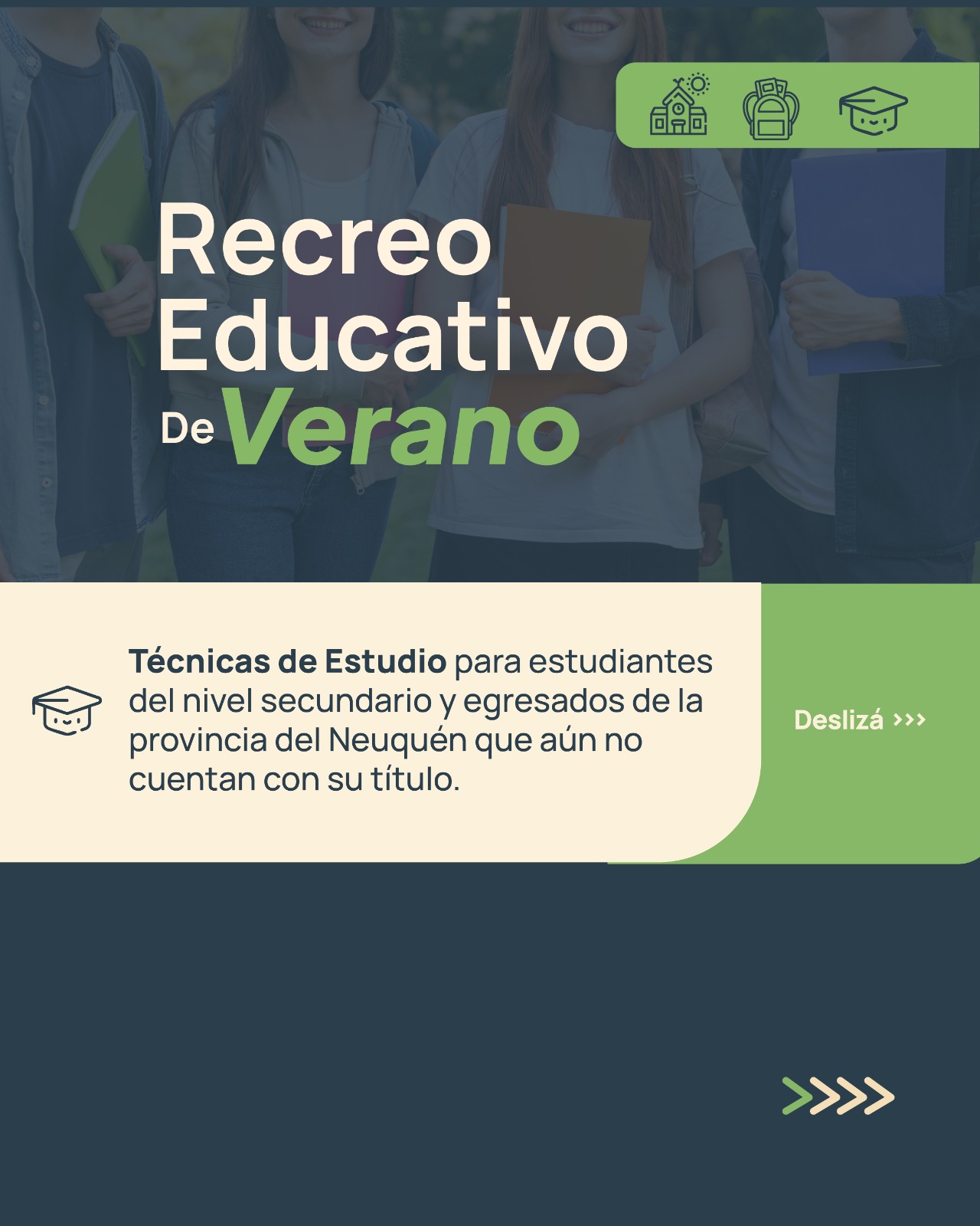 El Recreo Educativo de Verano es una propuesta de fortalecimiento que contará con talleres en las áreas de Prácticas del Lenguaje, Matemática y Arte. El objetivo es brindar acompañamiento a las y los estudiantes para afianzar conocimientos vinculados a cada espacio y consolidar saberes de cara al inicio de los estudios de Nivel Secundario.