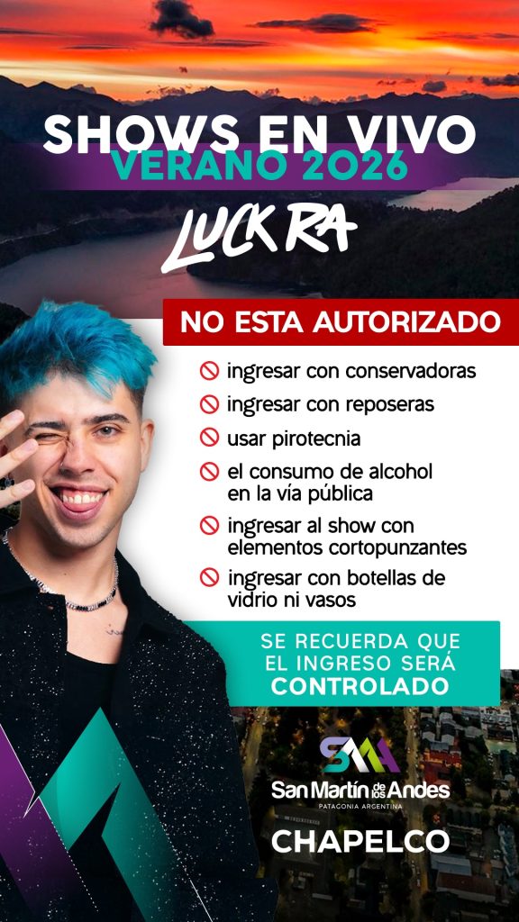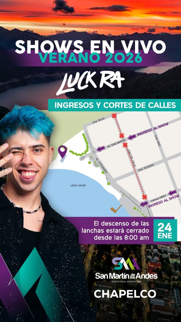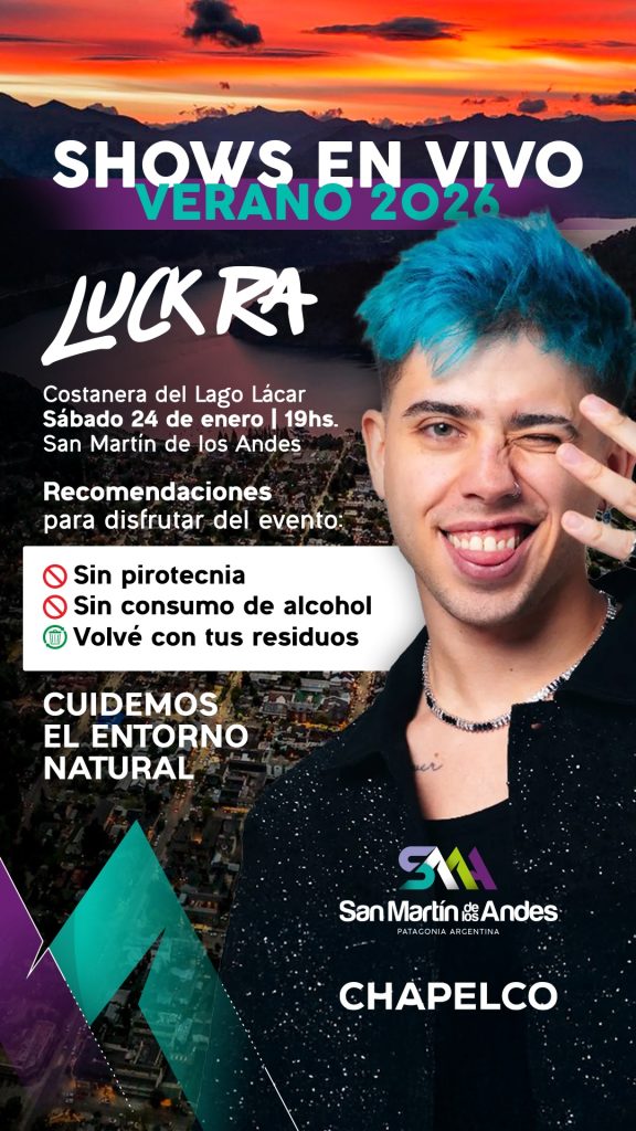 El Centro de Esquí Chapelco, con el acompañamiento del Municipio de san Martín de los Andes, a través de la Secretaría de Turismo, invita a disfrutar de un recital único de Luck Ra, este sábado 24 de enero, en la costa del lago Lácar, con acceso libre y gratuito. El evento contará, además, con la presentación de bandas locales y artistas invitados, quienes completarán una jornada musical inolvidable.