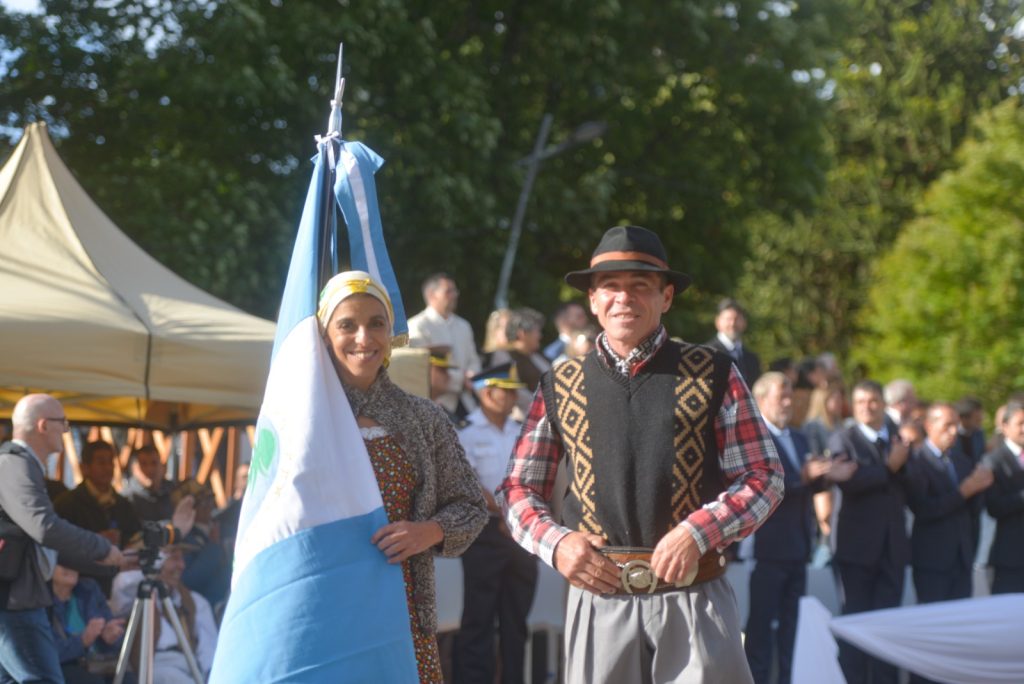 Previo al comienzo del acto, los funcionarios provinciales y municipales efectuaron la colocación de una ofrenda floral en el Monumento a los Primeros Pobladores junto a la Asociación de Amigos del Museo Primeros Pobladores, acompañados de un minuto de silencio.