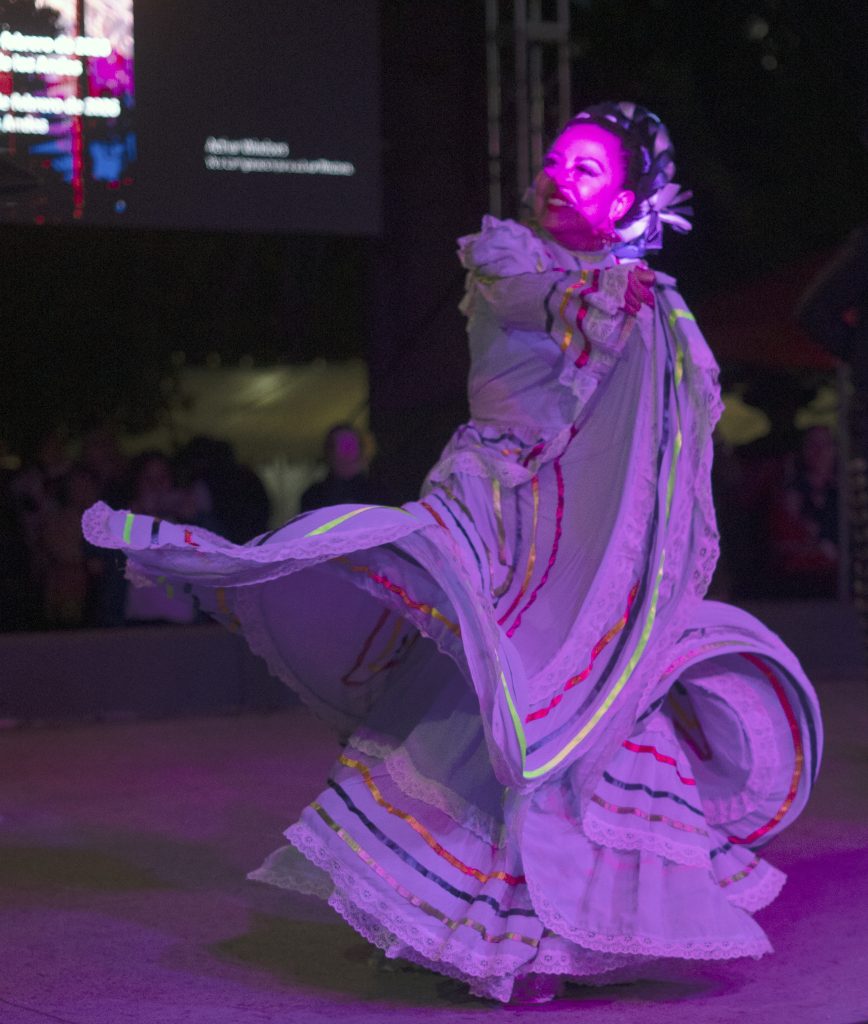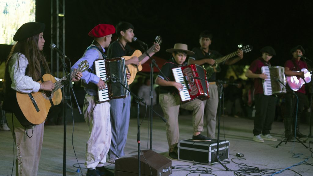 Al finalizar el desfile por el aniversario N° 128 de San Martín de los Andes, se realizó un show de danzas y musica en el escenario montado en la plaza San Martín, incluyendo el festival “El mundo danza al pie del Lanin”.