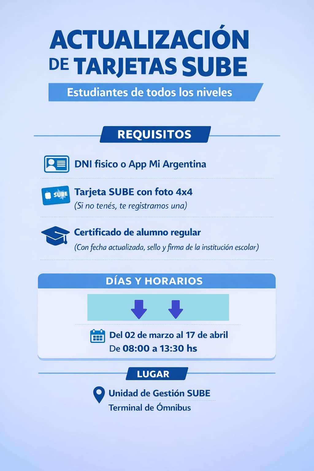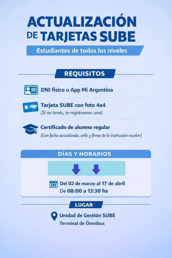 Los trámites se realizan en la oficina ubicada en la terminal de ómnibus, hasta el 17 de abril, entre las 8 y las 13.30.