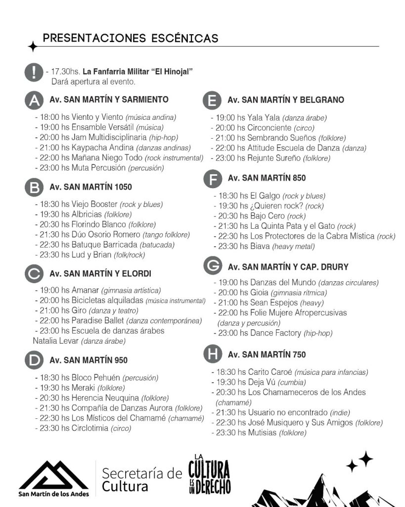 La jornada comenzará a las 18.00hs y contará con más de 70 presentaciones escénicas y una gran cantidad y variedad de espacios expositivos, que se ubicarán a lo largo de la avenida San Martín, desde Sarmiento hasta Rivadavia.