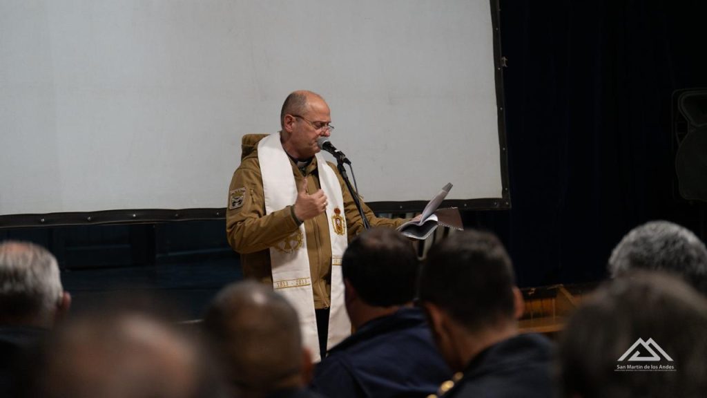 Durante el acto se presentó el corto “Moncho Águila, ecos de una voz perdida”, documental de Romina Sánchez, que retrata la vida de Jorge Néstor “Moncho” Águila, conscripto de Infantería de Marina oriundo de Paso Aguerre (Neuquén), quien murió en un intento de desembarco en las Islas Georgias.