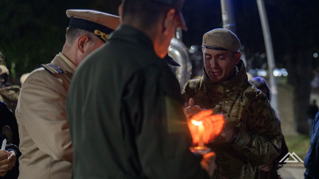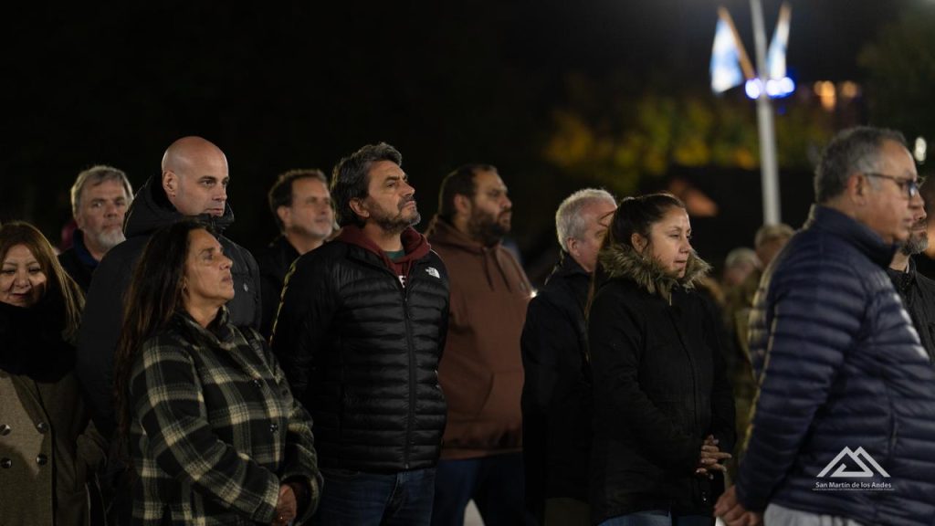 Tras la invocación religiosa a cargo del padre Alberto Rossi, la vigilia continuó en la Plaza San Martín, con la presencia de la Fanfarria El Hinojal; la entonación del Himno Nacional Argentino, la Marcha de Malvinas y otras interpretaciones alusivas, y la colocación de 44 velas para honrar a los 649 argentinos fallecidos y a los combatientes del conflicto de 1982.