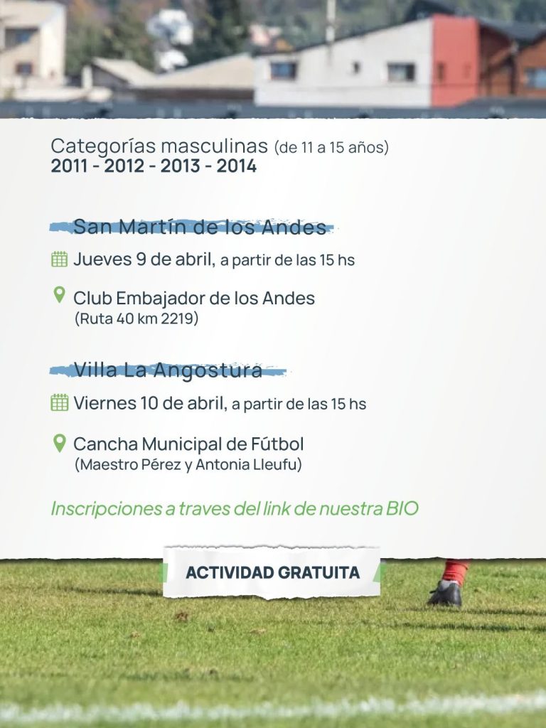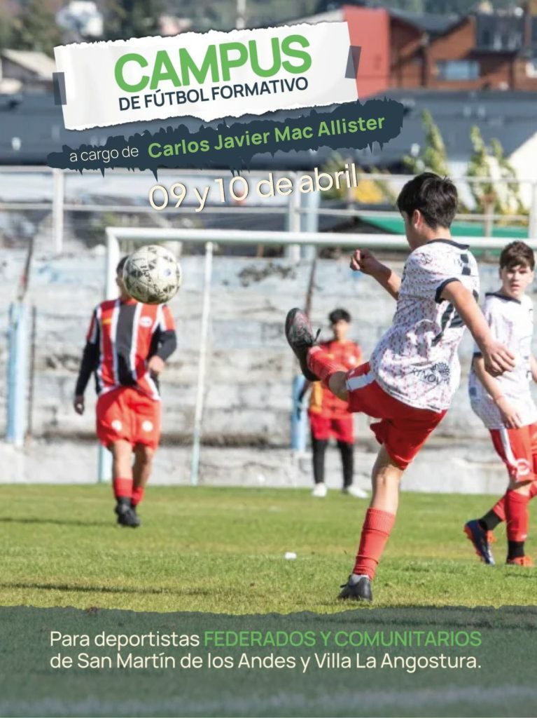 Mac Allister estará el jueves 9 en San Martín de los Andes, en el Club Embajador, y el viernes 10 en la cancha municipal de Villa La Angustura, para realizar un campus de fútbol masculino.