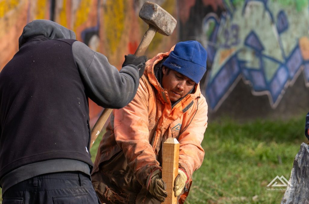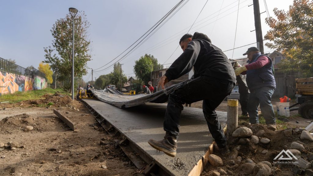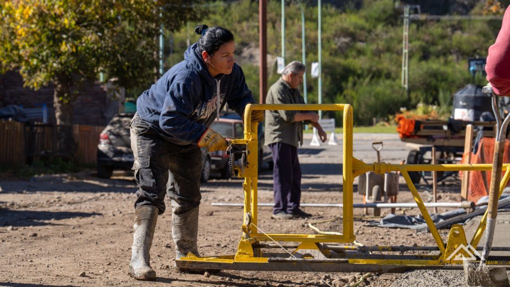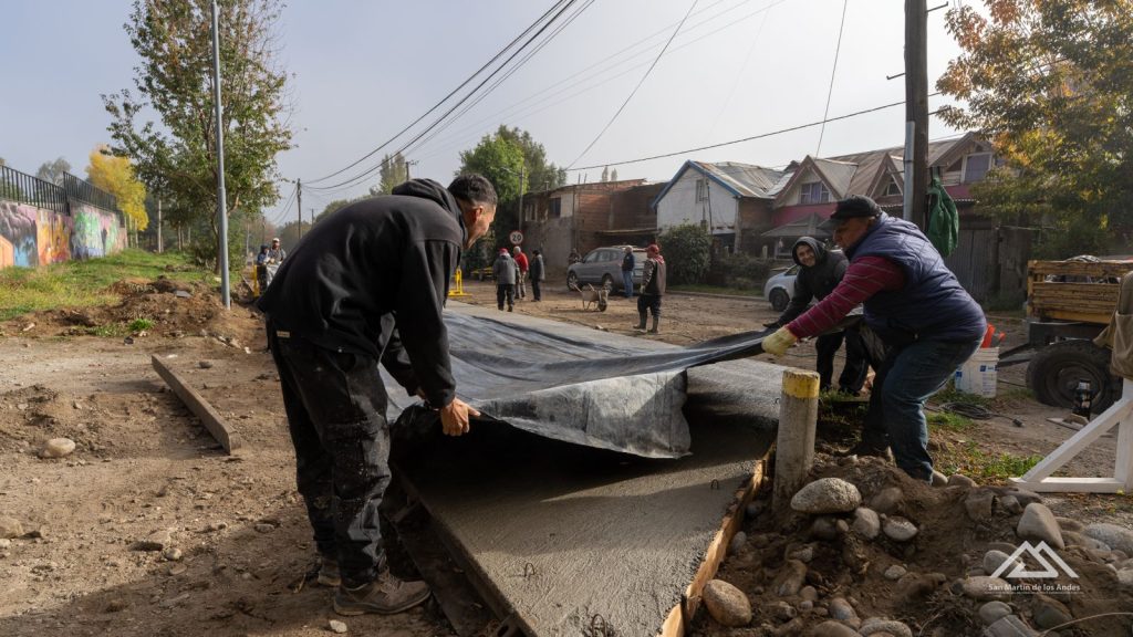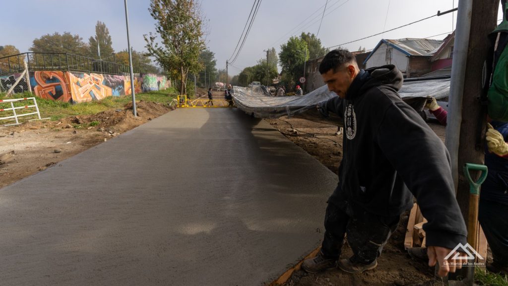 Una cuadrilla de Obras Públicas comenzó este martes con los trabajos con hormigón en la dársena de estacionamiento en calle Tromen, en Chacra 4.