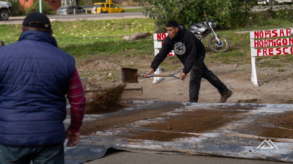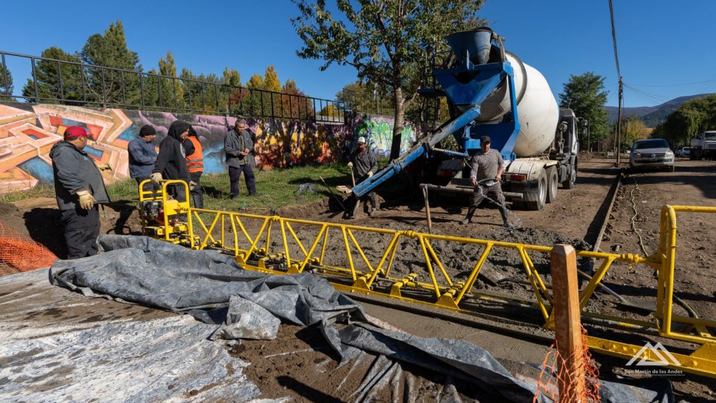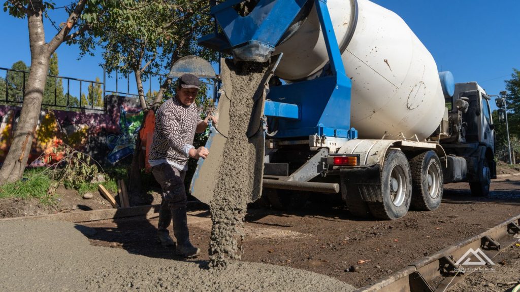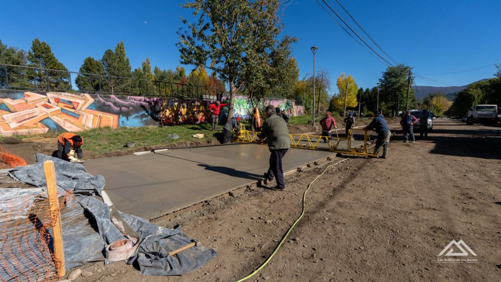 Durante esta semana se completará el hormigonado de algo más de 80 metros de extensión del área destinada al estacionamiento a 45 grados, sobre el lateral del skate park y a pocos metros del futuro edificio de la Escuela Integral N. 3.