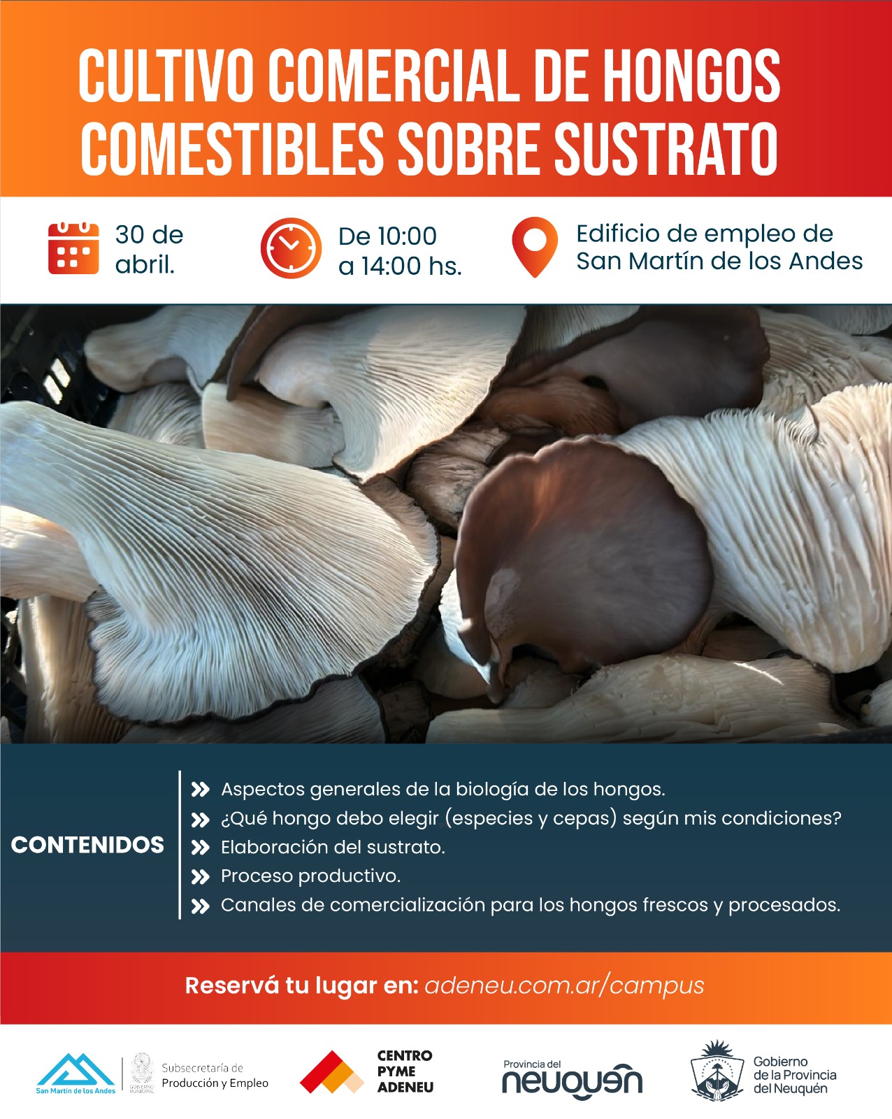 A quienes están buscando empezar un emprendimiento rentable o sumar una nueva línea de producción, la subsecretaría de Producción y Empleo ofrece la posibilidad de aprender a producir hongos comestibles sobre sustrato con un enfoque práctico y comercial:
