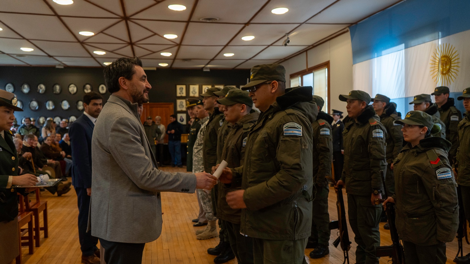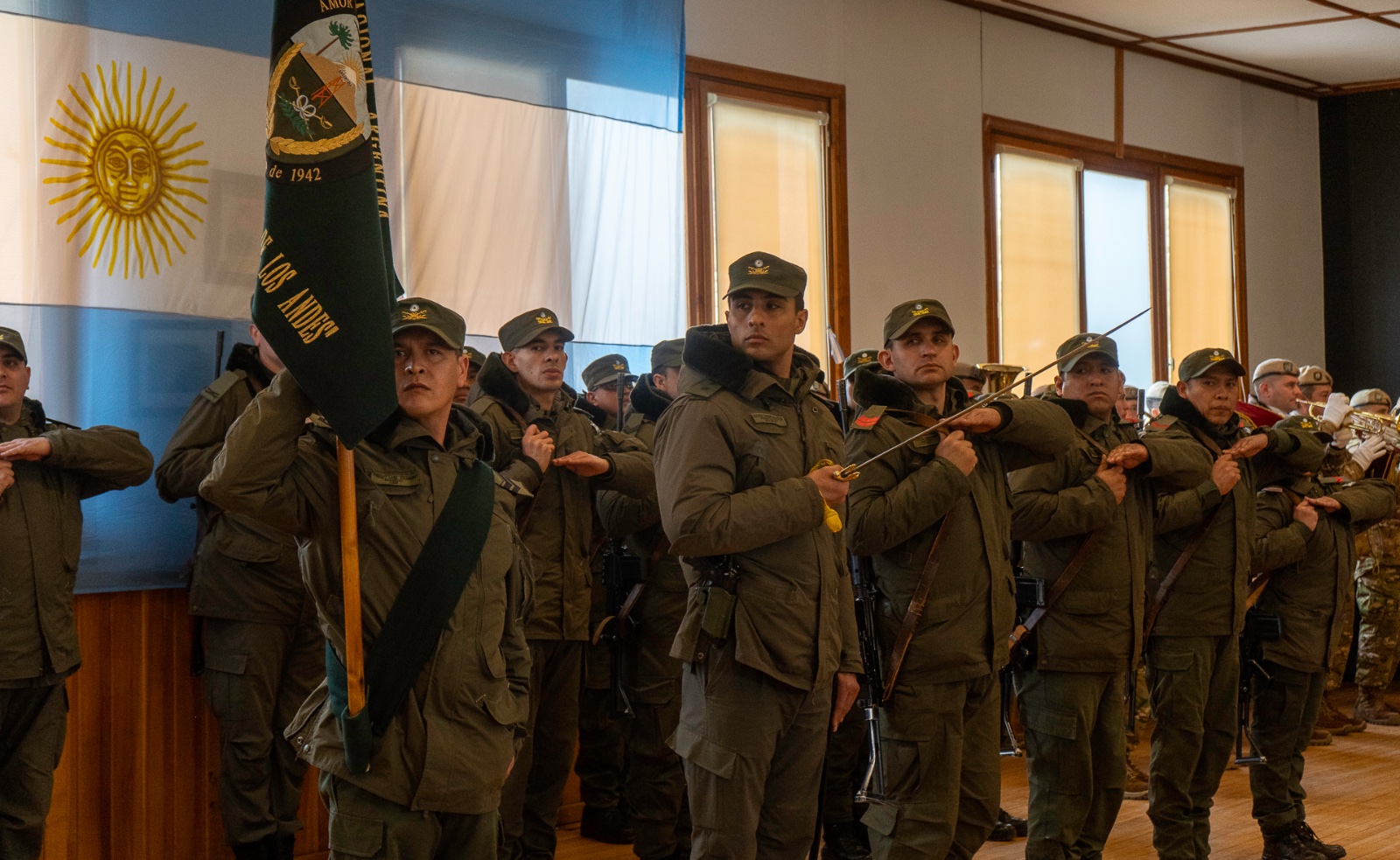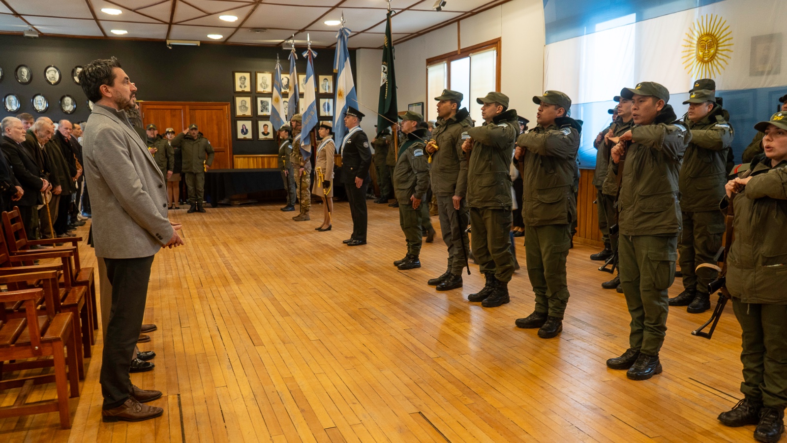 Durante la ceremonia se hicieron referencias históricas a Gendarmería, creada por Ley del Congreso Nacional el 28 de julio de 1938 para “contribuir decididamente a mantener la identidad nacional en áreas limítrofes, a preservar el territorio nacional y la intangibilidad del límite internacional”.