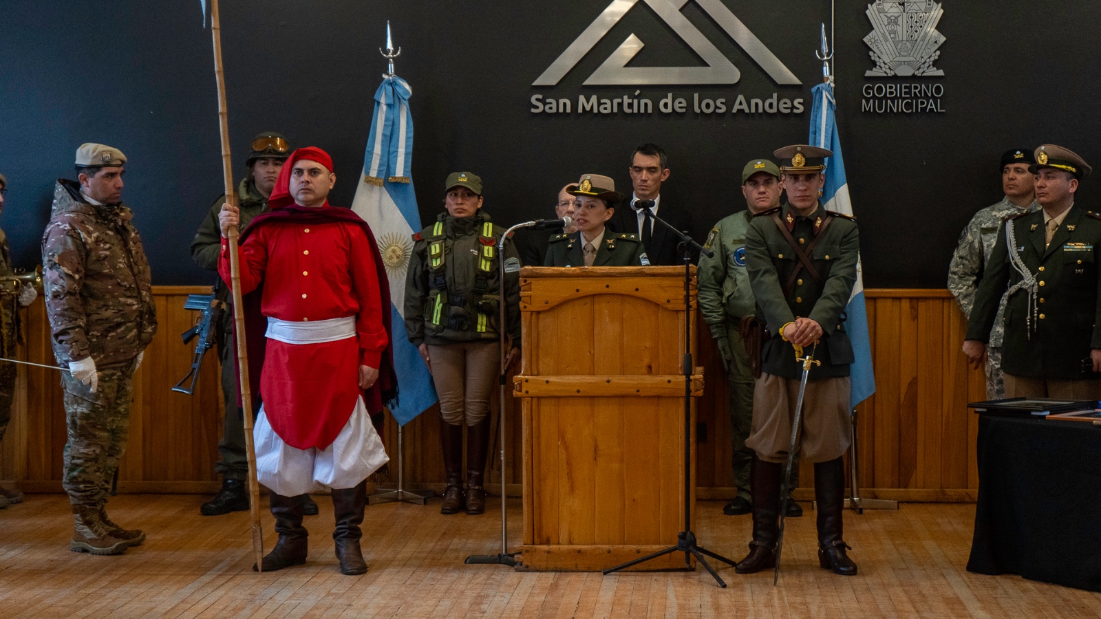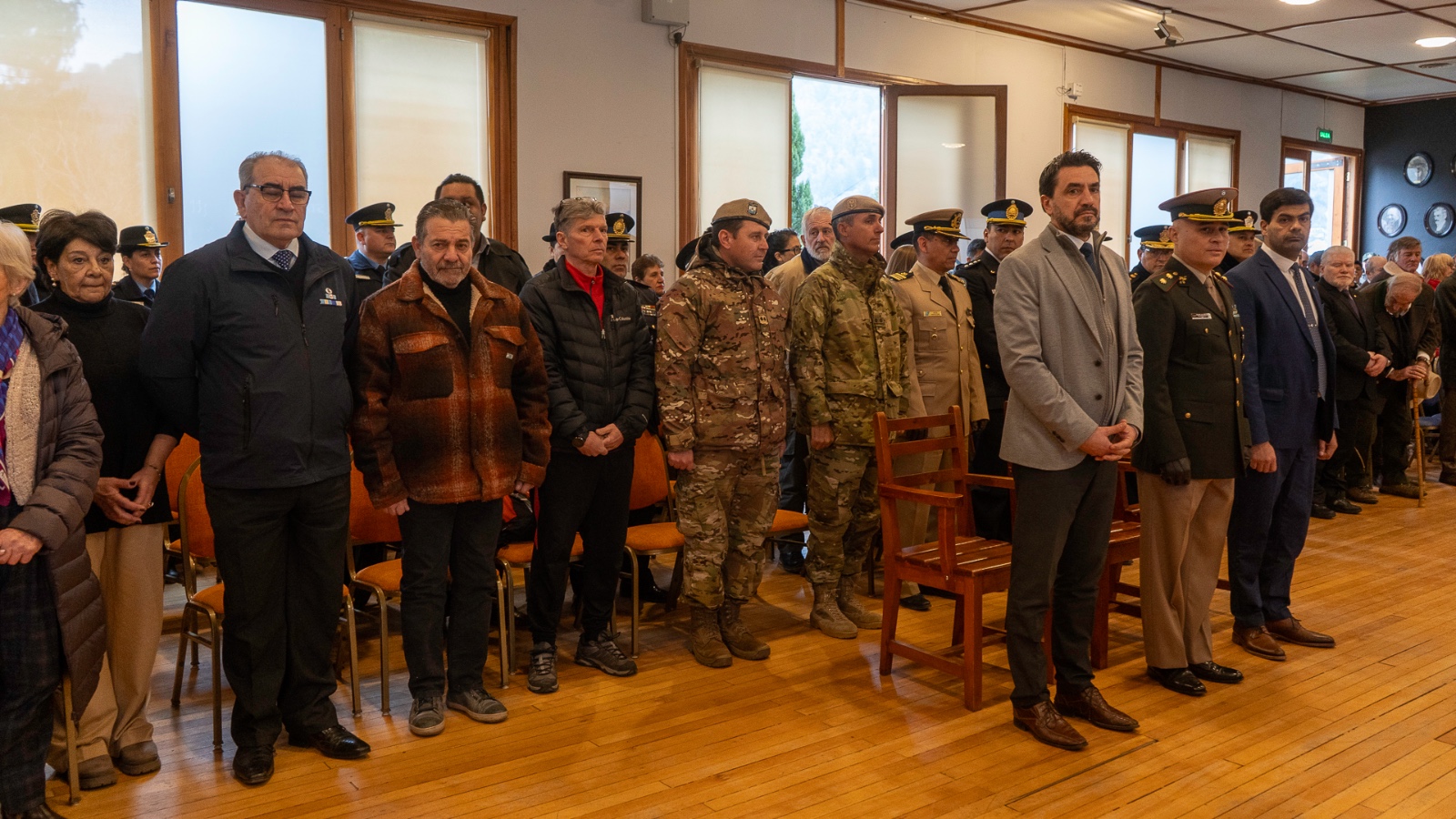 La ceremonia contó con la presencia de jefes y personal de todas las fuerzas federales de seguridad, veteranos de Malvinas, representantes de organismos nacionales en nuestra ciudad (Parque Nacional Lanin, Dirección General de Aduanas; Vialidad Nacional), funcionarios del Poder Judicial, concejales y miembros del gabinete municipal. También asistió el cura párroco Gabriel Mora Rebolledo.