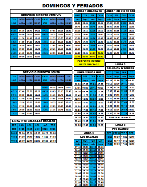 Nuevo servicio Urbano entre Chacra 32 y Terminal, pasando por Chacra 30, Callejón de Torres y Epet 21. Se cumple de lunes a viernes, de la siguiente manera: