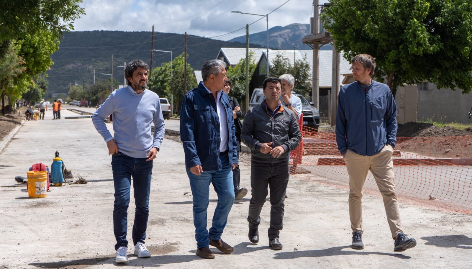 El gobernador de Neuquén, Rolando Figueroa, y el intendente de San Martín de los Andes, Carlos Saloniti, recorrieron este jueves la obra de pavimentación del boulevard de Av. Los Lagos, en Cordones del Chapelco.