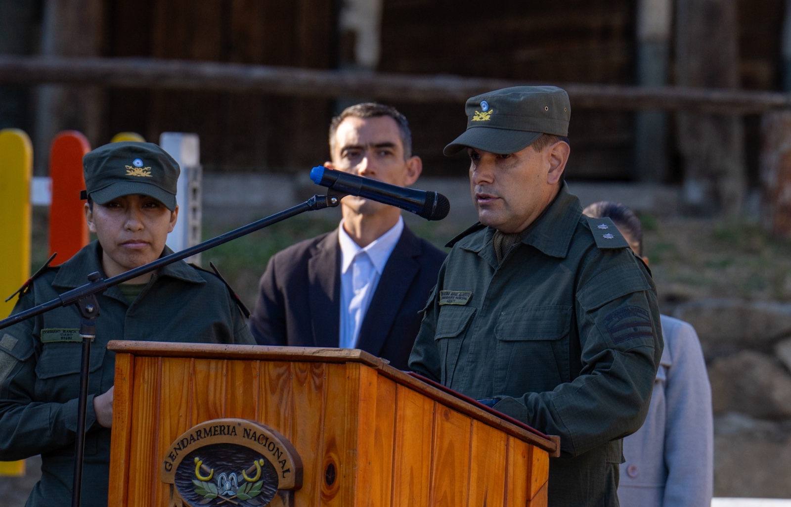 El acto estuvo encabezado por los máximos jefes de Gendarmería Nacional en nuestra región, encabezados por el jefe de la Agrupación XII Comahue, comandante principal Juan Eduardo Kailer; y el jefe del Escuadrón 33, comandante principal Ariel Alberto Oliveira.