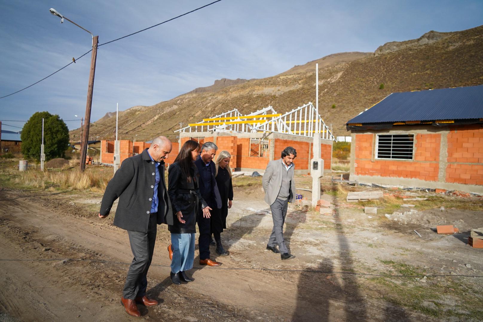 El gobernador y el intendente y la comitiva también visitaron el barrio de las futuras 38 viviendas de Chacra 28, que el Estado provincial financia para reactivar las obras.