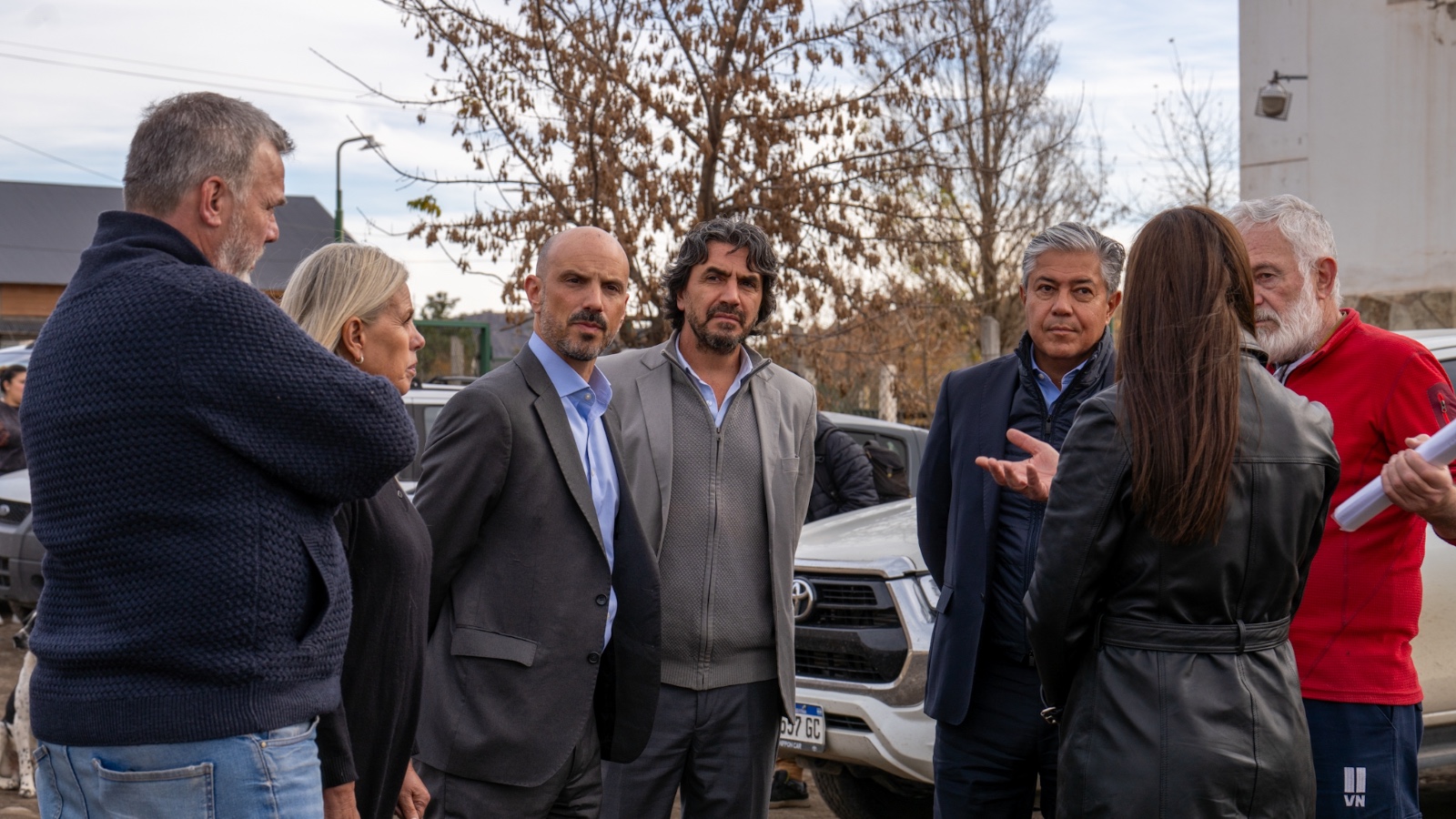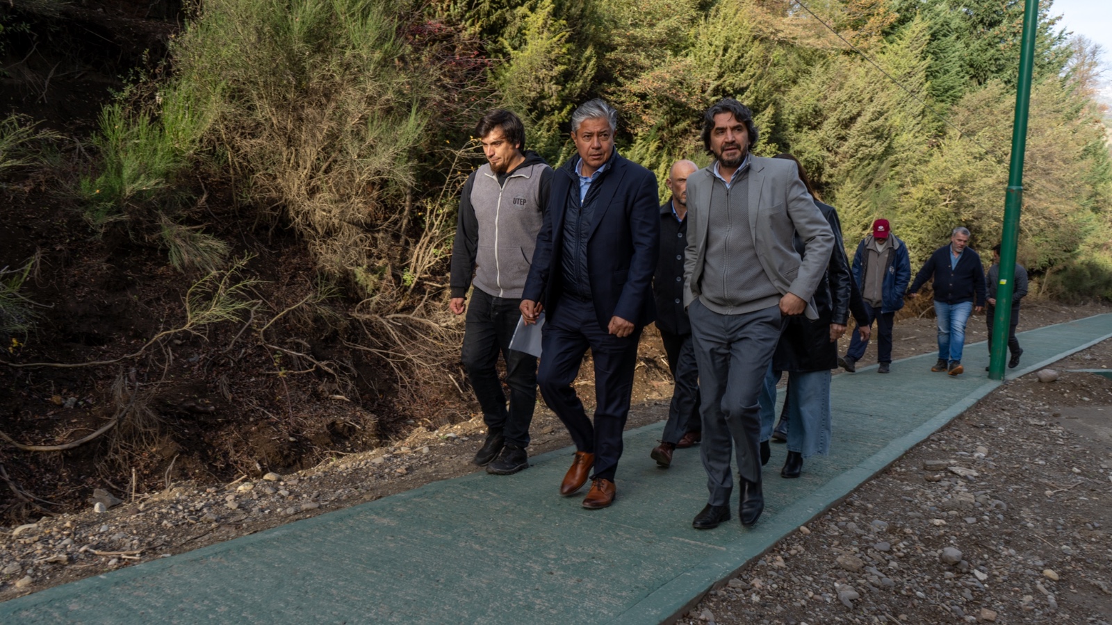 La jornada incluyó una recorrida por la vereda de casi 500 metros hasta la Epet 21, paralela a la Ruta Provincial 48, que la cooperativa Unión de los Andes construyó con financiamiento del Estado neuquino. Durante la visita, se sumaron Juan Farías y Germán Ruffolo.
