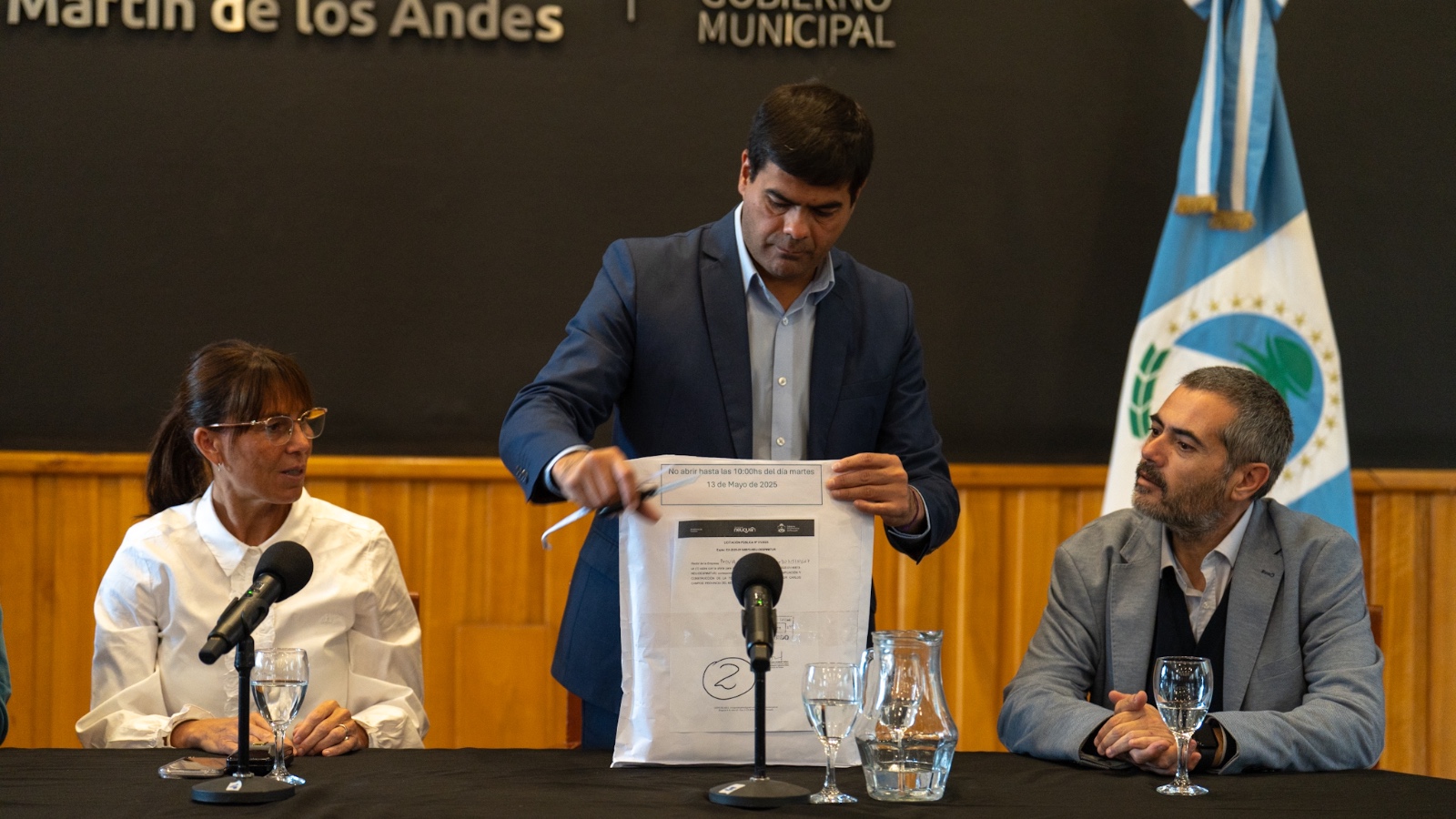 Saloniti y Madueño participaron este martes del acto de apertura de sobres para la licitación de las obras de ampliación y mejoramiento del aeropuerto, realizada en San Martín de los Andes con la presencia del Gobernador de la provincia del Neuquén, Rolando Figueroa.