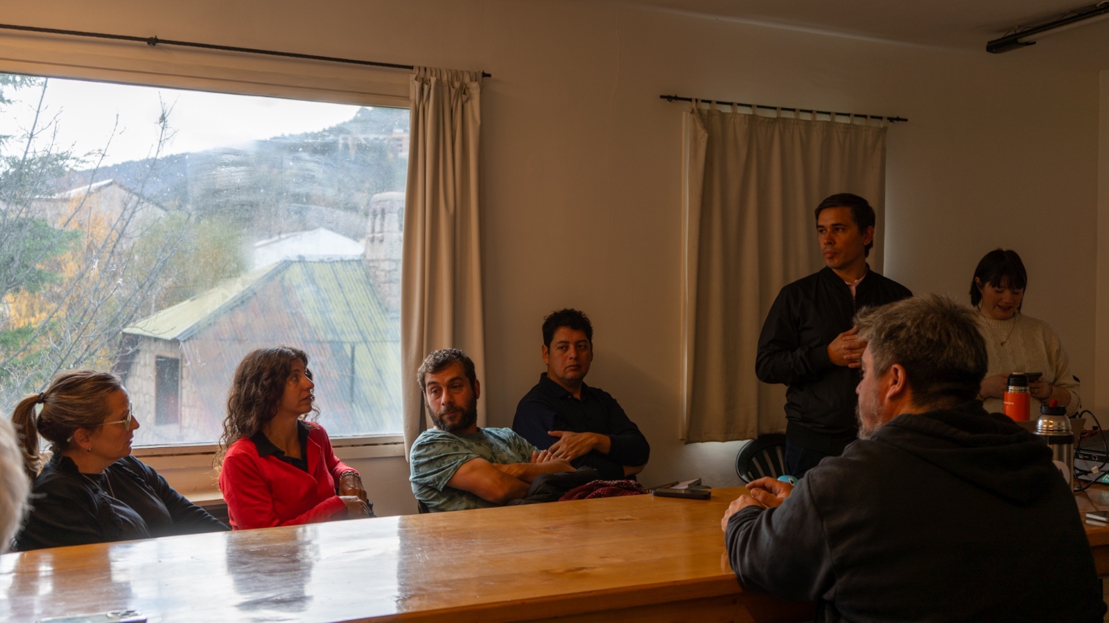 Asistieron al encuentro el intendente municipal, Carlos Saloniti; la secretaria de Planificación, Paula Destéfano; el secretario de Turismo, Alejandro Apaolaza; la delegada provincial de la Región Lagos del Sur, Eliana Rivera; la subsecretaria de Juntas Vecinales, Lorena González; y Romina Schenk, de la Unidad Ejecutora de Obras Específicas. También participó el defensor adjunto de la Defensoría del Pueblo y del Ambiente, Gonzalo Salaberry.