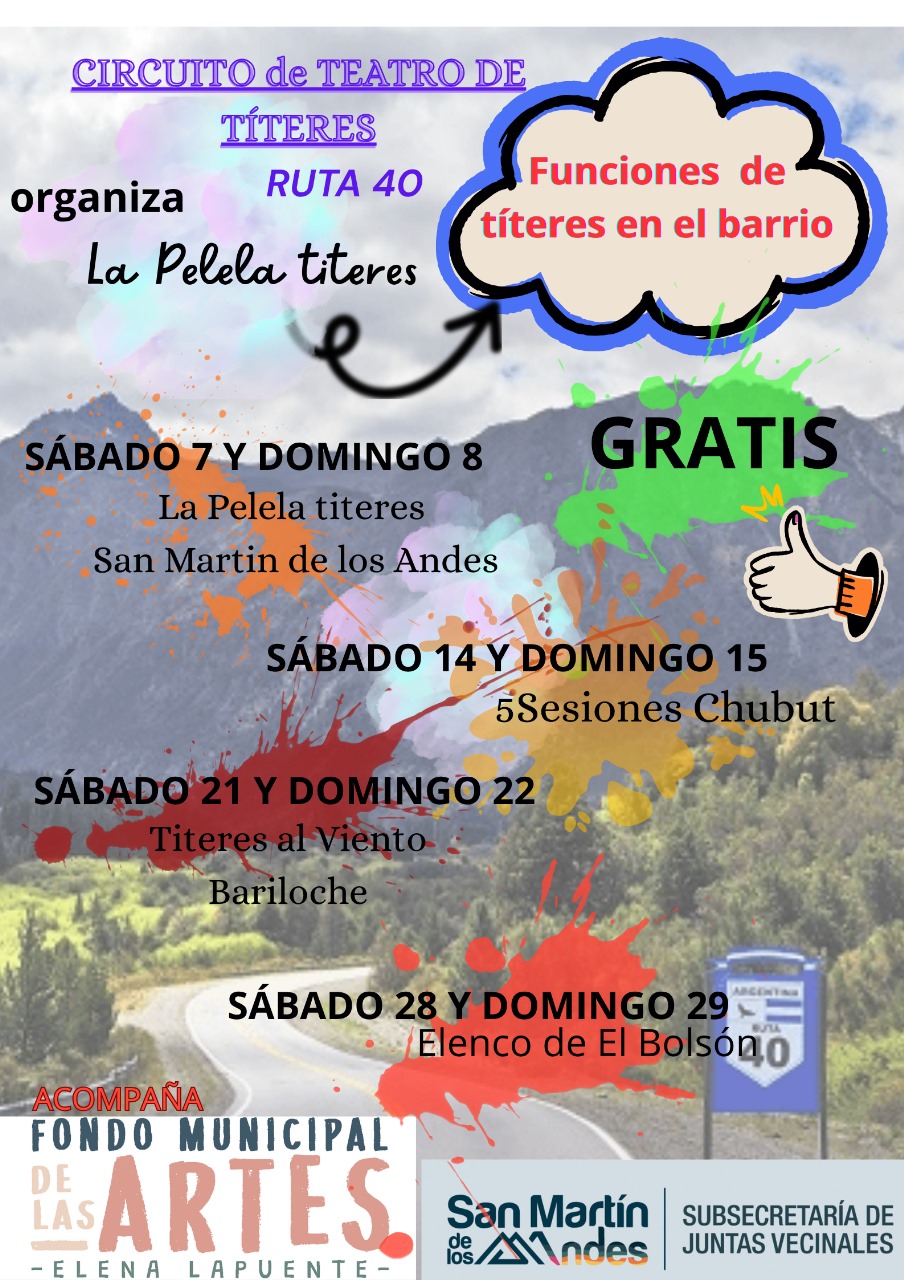 La propuesta surge a partir de la convocatoria del Fondo Municipal de las Artes “Elena Lapuente” y la organización está a cargo del grupo La Pelela títeres, con el acompañamiento de la Subsecretaría de Juntas Vecinales de la Municipalidad de San Martín de los Andes.
