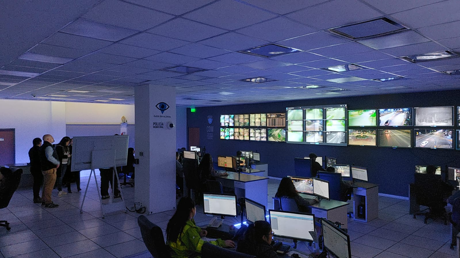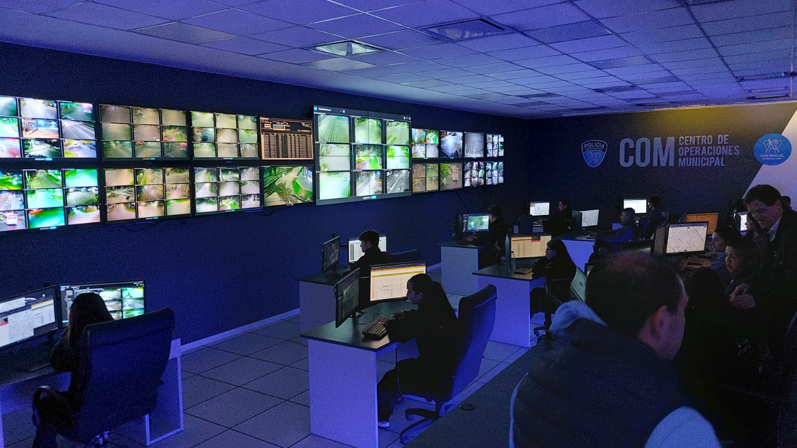 Este domingo, Comesaña y Sánchez visitaron las oficinas y centro de monitoreo de Ojos en Alerta de la localidad de San Miguel, en el noroeste del conurbano bonaerense, donde fueron recibidos por el intendente sanmiguelino, Jaime Méndez, y por el director del área, Cristian Méndez.
