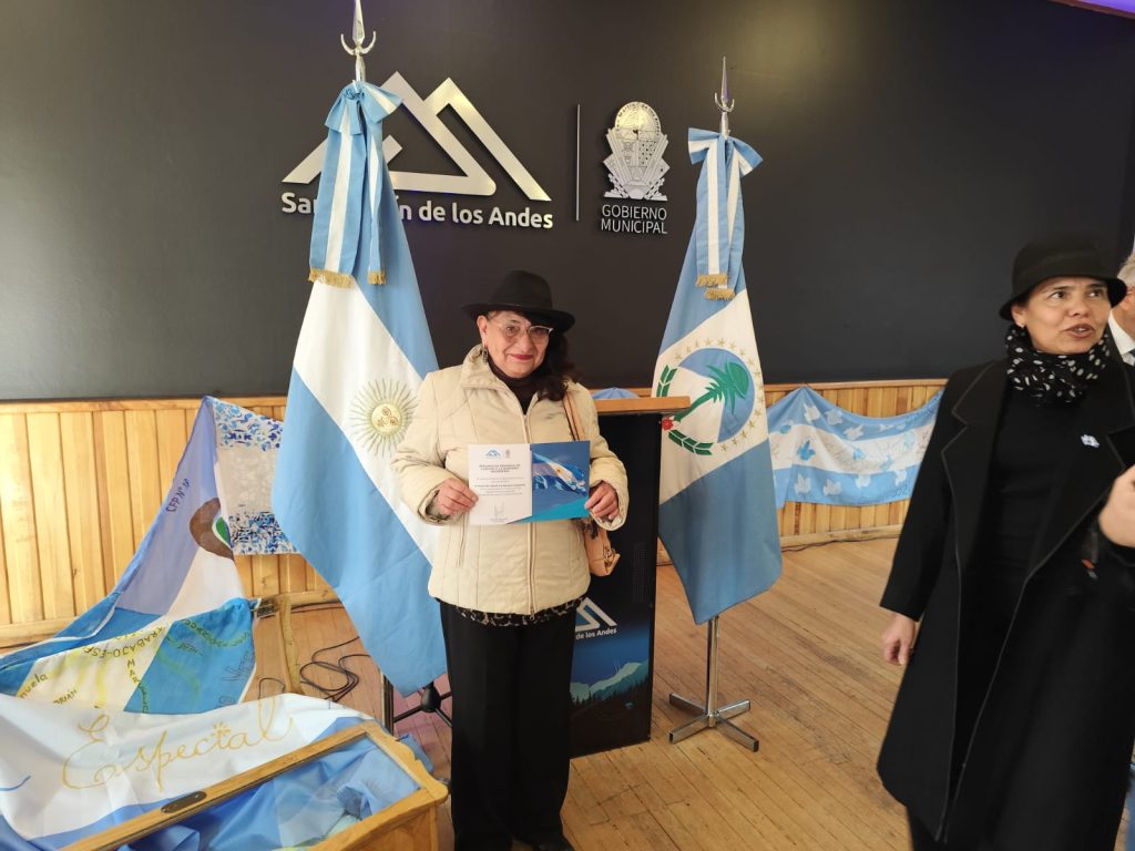 En este acto, la Escuela Especial Nº 8, que colocó el último tramo a esta bandera, y que, además, fue impulsora del proyecto de declaración de Interés, en el año 2005, entregó al Municipio, en guarda y hasta tanto se realice el sorteo de las escuelas. La institución estuvo representada por las profesoras, Gabriela Sirla, directora, y por Gaby Nemirovski.