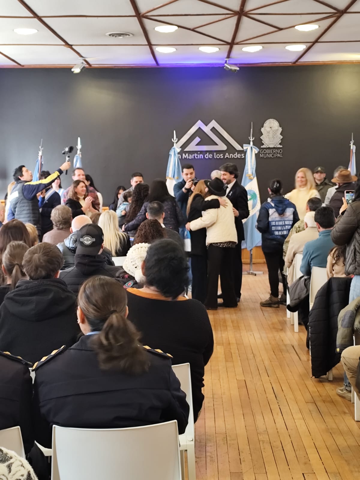 “¿Reafirman su promesa de lealtad a la Bandera Argentina, símbolo de libertad, justicia y unión del pueblo, comprometiéndose a honrarla con sus actos y a trabajar por el bien común de nuestra Nación?!, preguntó la concejal. La respuesta de cada vecina y vecino fue seguida por aplausos de los asistentes. El intendente y las y los concejales presentes hicieron entrega de los diplomas alusivos.