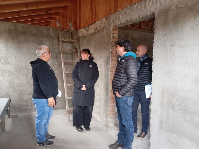 La ministra de Desarrollo Humano, Gobiernos Locales y Mujeres de Neuquén, Julieta Corroza, y el intendente Carlos Saloniti visitaron este domingo las instalaciones de los vestuarios de la cancha municipal que están siendo terminados por el Municipio con aportes provinciales.