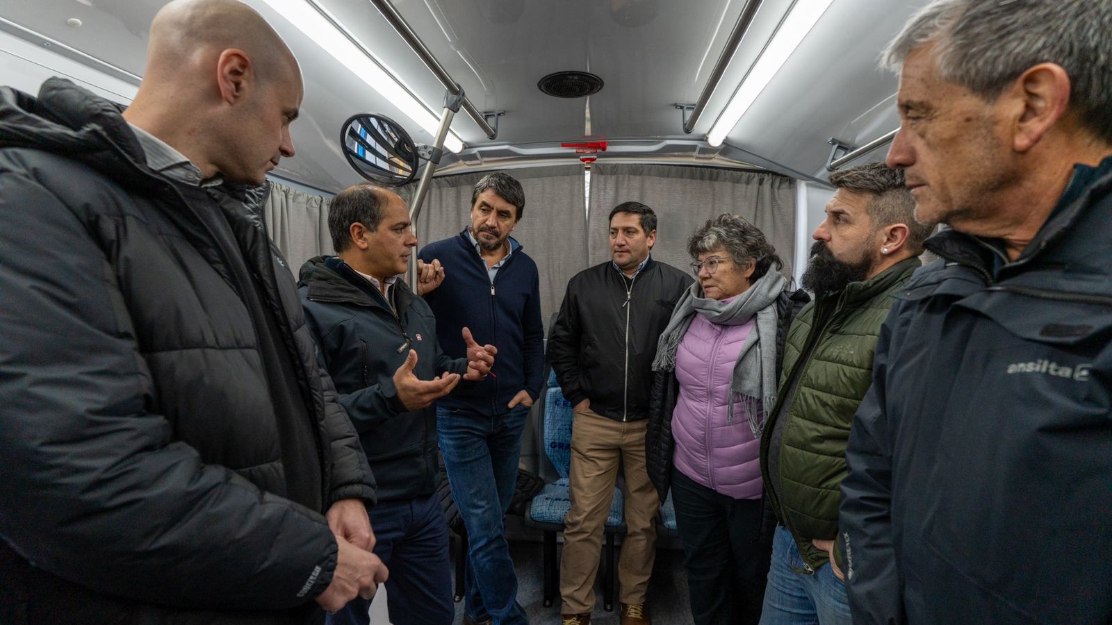 La presentación se realizó dentro de las unidades, internos 9 y 11, estacionados en la Plaza San Martín, a la que asistieron el intendente Carlos Saloniti, los representantes de la empresa Nicolás Cáceres y Gustavo Balmaceda; los concejales Jovita Brondo, César Meza; Roberto Sicilia y Pablo Padilla; los secretarios de Turismo y de Gobierno, Alejandro Apaolza; y de Hacienda, Matías Consoli; y el delegado en nuestra región de la Unión Tranviarios Automotor (UTA), Marcelo Mas.