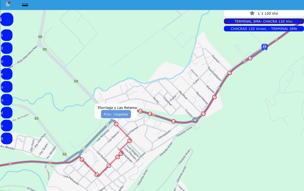 Luego se despliega el mapa donde están demarcados los recorridos y las paradas, incluyendo la más cercana al lugar donde se encuentre el usuario.