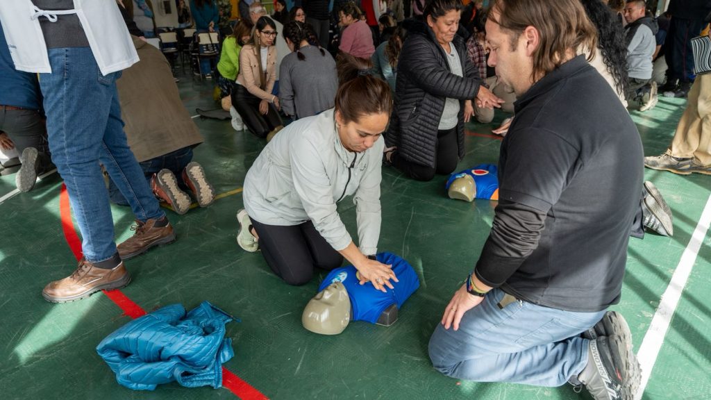 Unas cien personas participaron del taller sobre monóxido de carbono y técnicas de Reanimación Cardiopulmonar (RCP); y uso de Desfibrilador Externo Automático (DEA), que se llevó a cabo este sábado en Cordones del Chapelco.