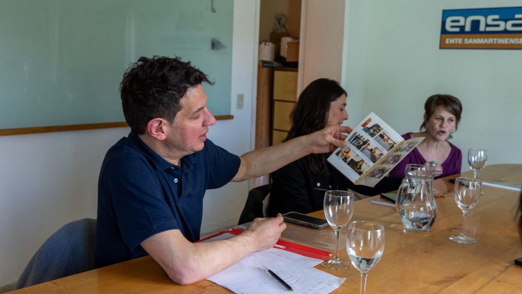 De la reunión participaron la secretaria de Cultura de Villa La Angostura, Verónica Molina; la secretaria de las Culturas de Junín de los Andes, Lucrecia Panzia, y el secretario de Cultura sanmartinense, Gustavo Santos; junto a colaboradores de los tres municipios.