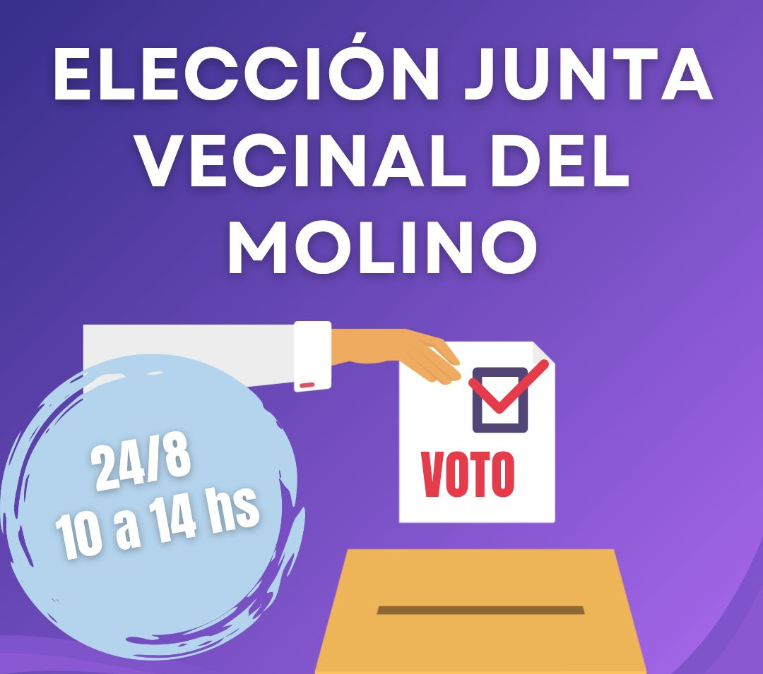 Luego de vencidos los plazos que establece la ordenanza que reglamenta las Juntas Vecinales en su Capitulo IV artículo 26 y realizada las reuniones de Junta Electoral, este domingo se realizarán elecciones para la Junta Vecinal de El Molino.