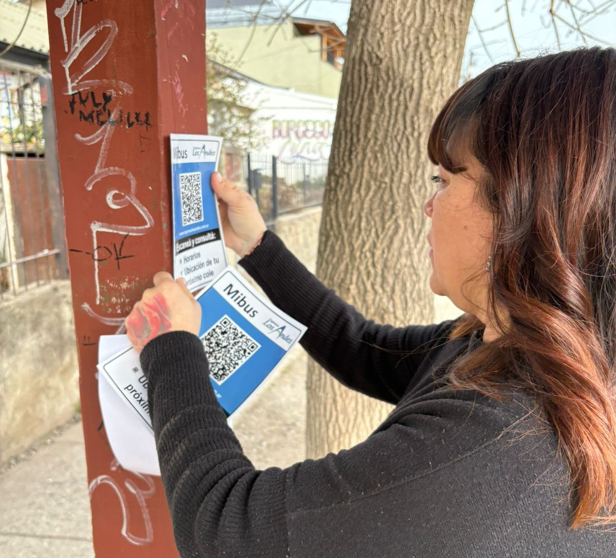 Trabajadoras de la Coordinación de SUBE del Municipio y de la Subsecretaría de Juntas Vecinales realizaron este miércoles una nueva distribución de los adhesivos con el código QR para consultar los horarios del transporte urbano e interurbano.