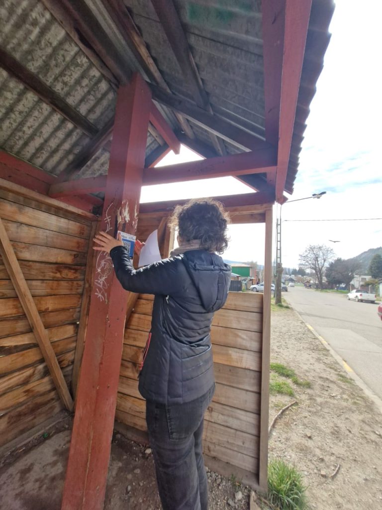 La jornada se cumplió en paradas y garitas de El Arenal, tanto dentro del barrio como en las ubicadas sobre Ruta Nacional 40; y en las paradas del Hospital y del gimnasio Javier Carriqueo.