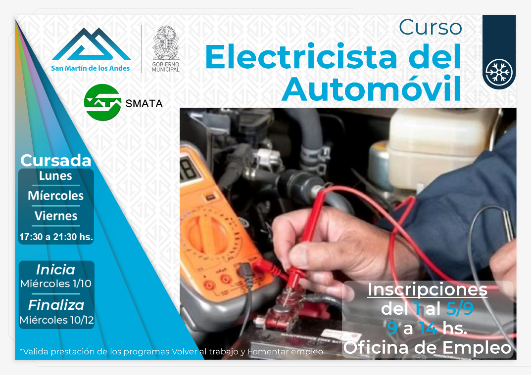 La Oficina de Empleo y SMATA informan que, a partir del lunes 1 de septiembre, abre la inscripción al curso de «Electricista del Automóvil».