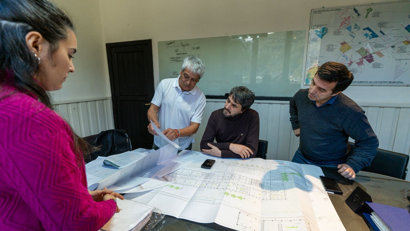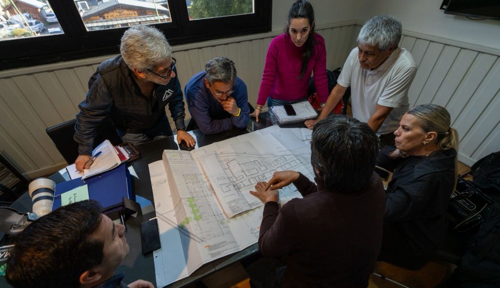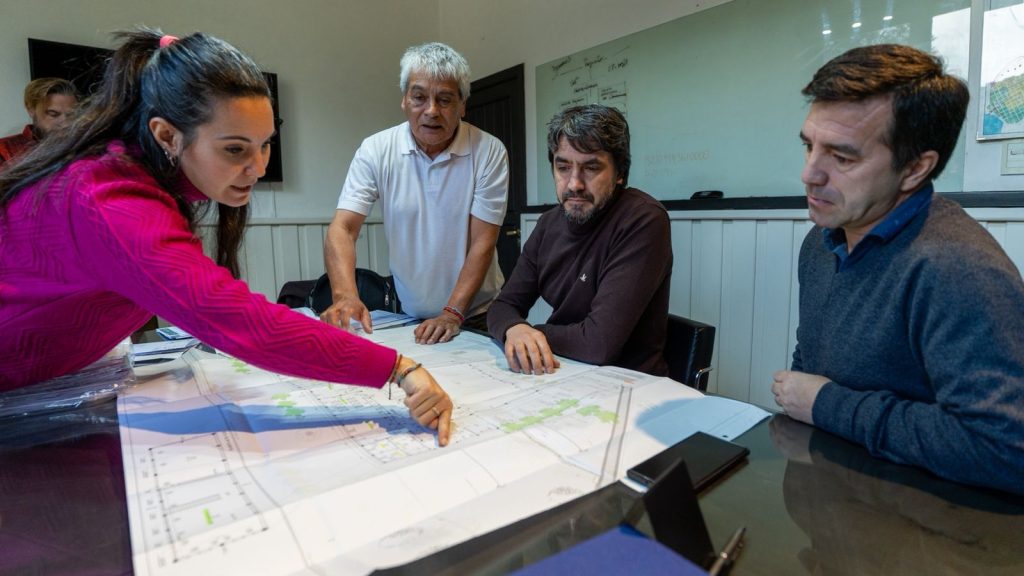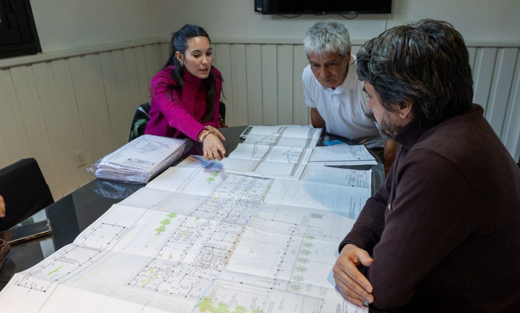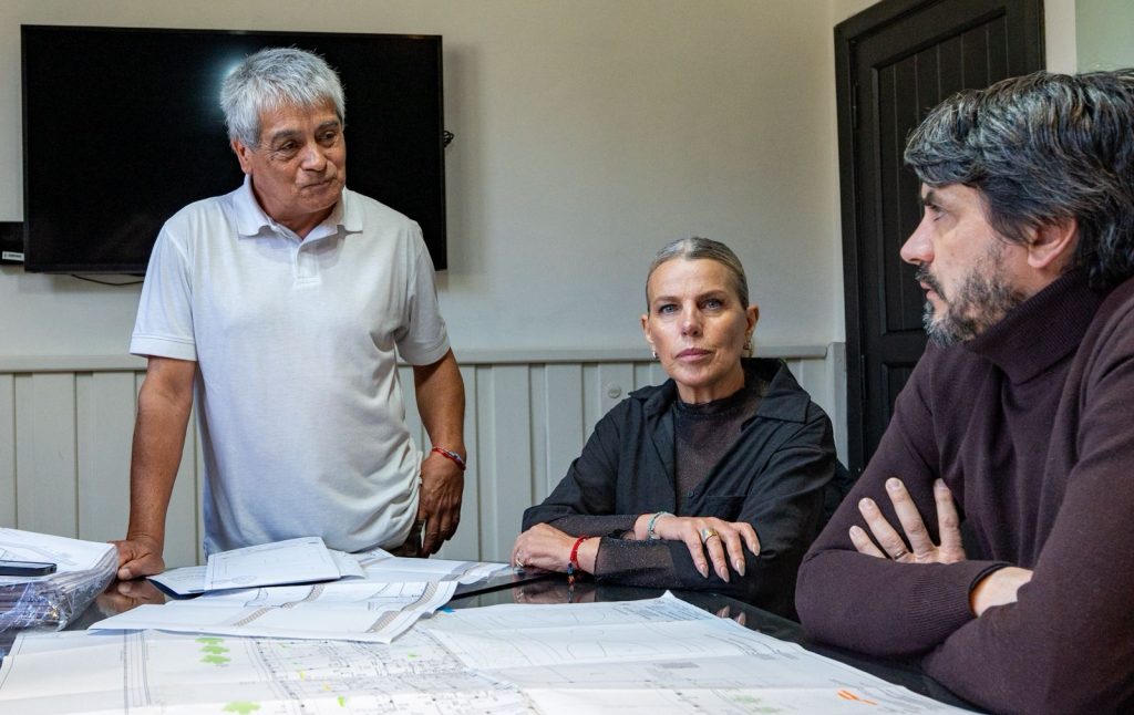El jefe comunal recibió este viernes al delegado de la Región Lagos del Sur de la Dirección Provincial de Obras Contratadas, Eduardo Aníbal Urrutia; y a la jefa de Obra de la empresa constructora, María José Aldasoro; quienes presentaron los planos de ambos edificios y confirmaron detalles de los trabajos.