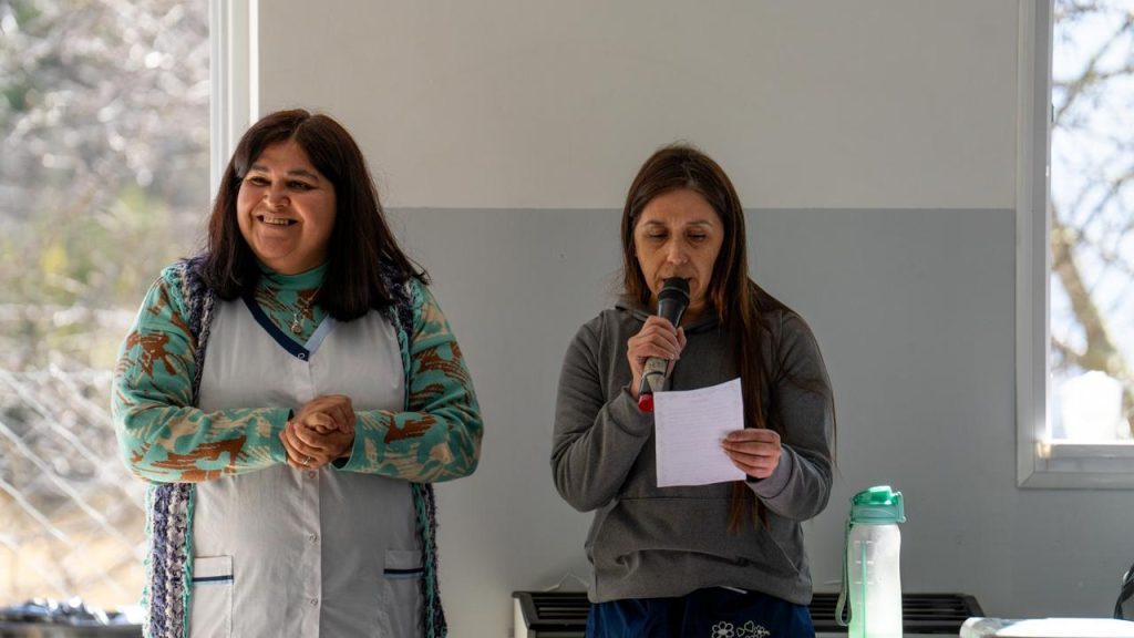 La docente señaló que, actualmente, el establecimiento tiene modalidad de jornada extendida, de 8.30 a 15.30, con 14 estudiantes de inicial y primaria de primer ciclo, segundo ciclo y tercer ciclo. Además de los docentes de aula, la escuela tiene profesores de educación física, de plástica, de música, de huertas y de lengua y cultura. Además, agradeció a las familias y al equipo docentes y auxiliares por el acompañamiento en esta celebración y en este tiempo que lleva al frente de la escuela.