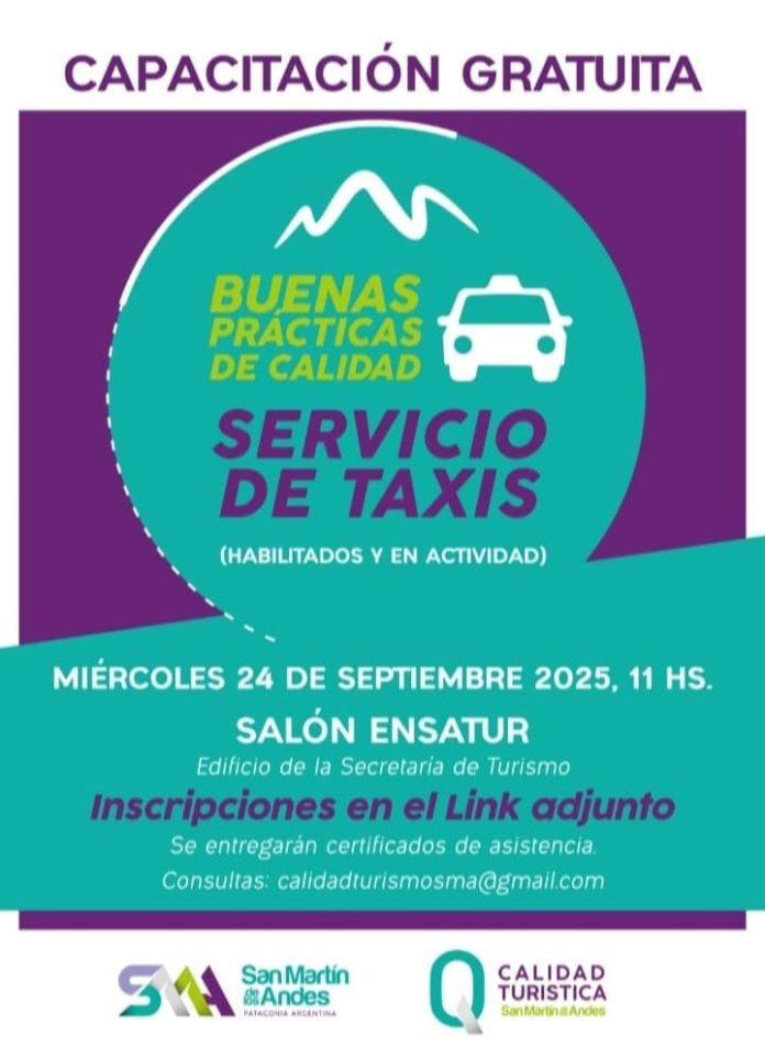 La Secretaría de Turismo, a través de su área de Calidad, invita a todos los taxistas propietarios y choferes habilitados de la ciudad a participar de una capacitación enmarcada en el programa “Buenas Prácticas de Calidad para Servicios de Taxis”.